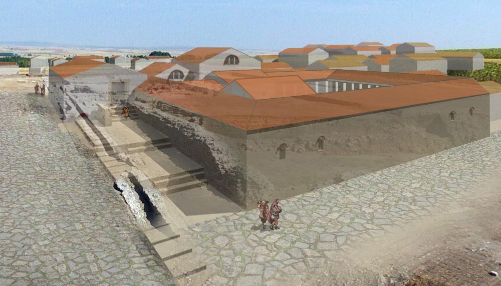 La vía procedente de Segovia y Complutum accedía al centro de la ciudad, tras cruzar el puente sobre el Duratón y el suburbio meridional, mediante una gran rampa, generando una calle en ascenso (clivus) que desembocaba en el Kardo Maximus, calle en sentido norte-sur que atravesaba el centro urbano hasta la zona del Foro.